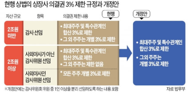 | 개정 내용 | 사내이사 포함 모든 감사위원 후보에게 3%룰 적용 |