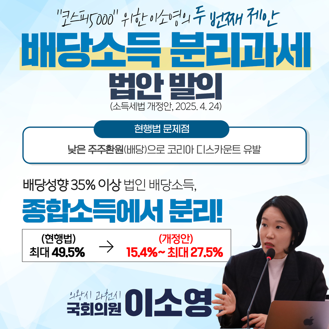 💰 이소영 의원 배당소득세 분리과세법안 핵심 내용