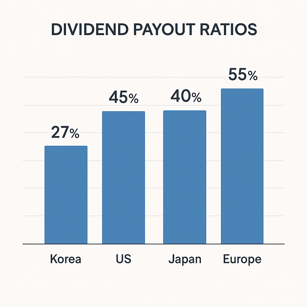 | 한국 | 26-27% | 1.4-2.8% | 최하위 수준, 배당 기피 문화 |