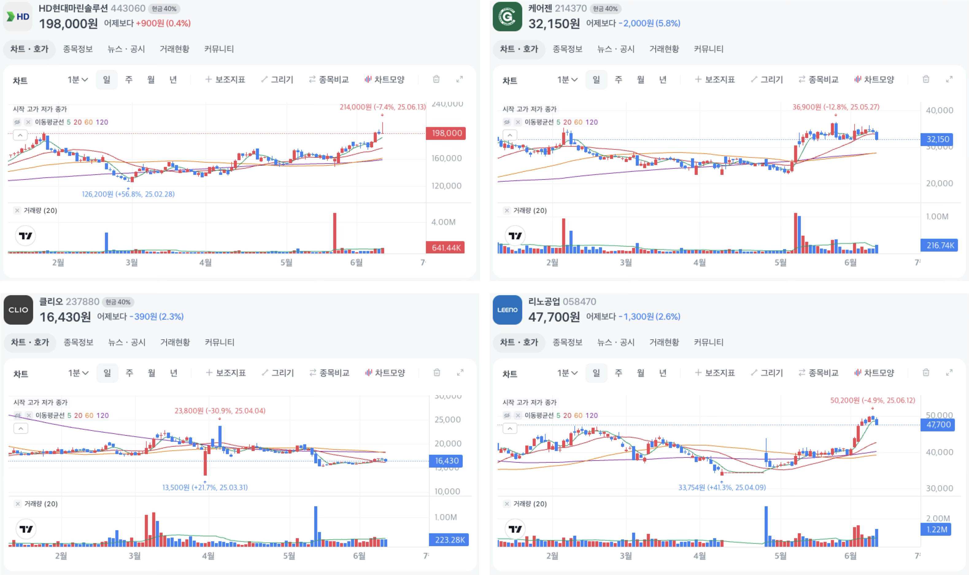 기타업종 : HD현대마린솔루션, 클리오, 케어젠, 리노공업