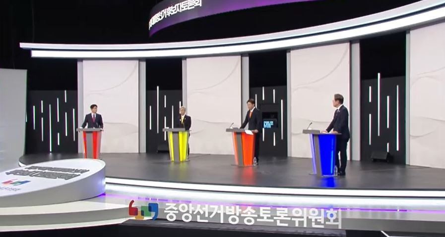 공직선거법 규정에 따라 국회 의석수, 직전 선거 득표율, 여론조사 지지율을 기준으로 참석 자격을 갖춘 네 명의 후보들이었죠! 📺