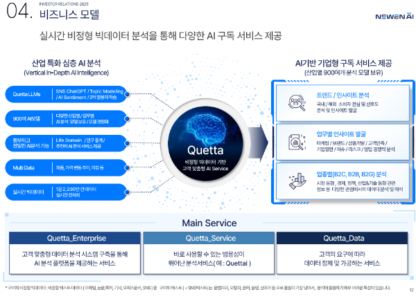 | 주요 서비스 | AI 기반 빅데이터 분석 플랫폼 'Quetta' |